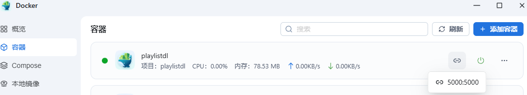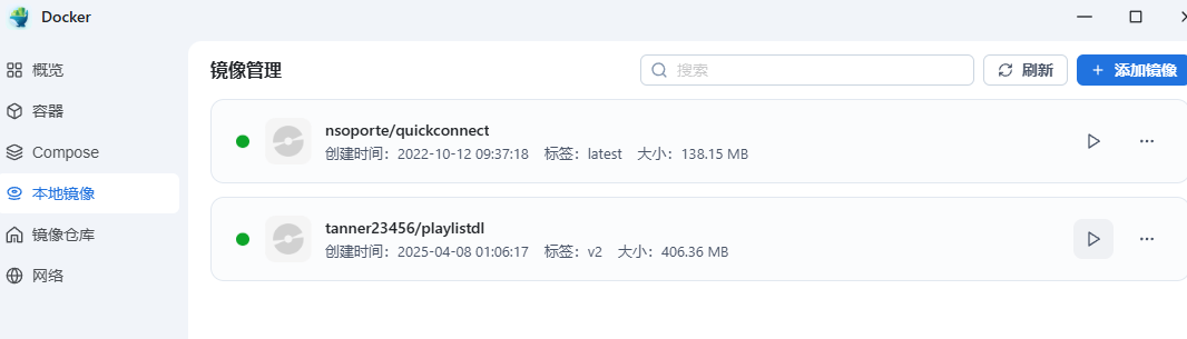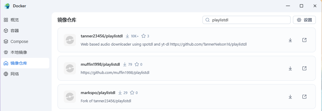 进入飞牛docker,“镜像仓库”搜索“playlistdl”