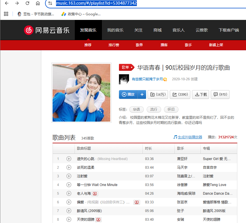 在网易云音乐里选择一个音乐链接