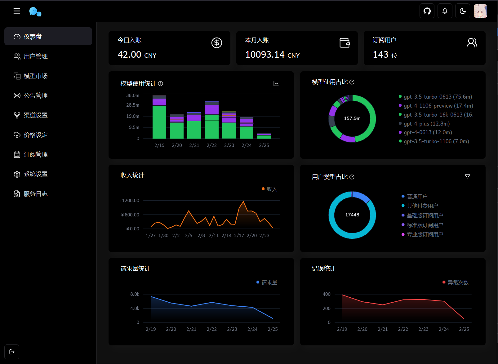 Chat Nio系统源码还提供了模型市场功能,用户可以搜索和浏览各种模型资源,并通过顺序拖拽的方式进行模型的排序和选择。同时,还支持多语言切换功能,满足不同国家和地区用户的需求。