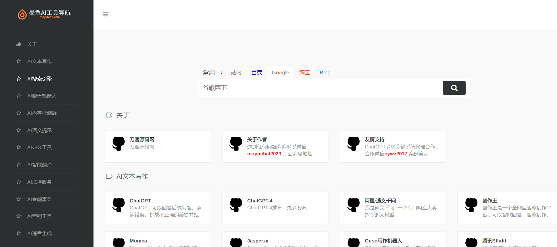 当前文章标题:2023年Java源码 最新墨鱼人工智能导航网站源码 AI站点分类和AI工具集合导航源码