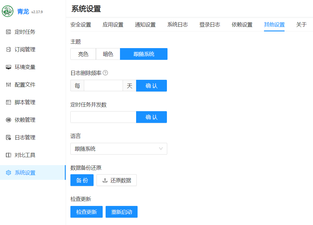 青龙面板的内容迁移很简单,备份-还原就完事了