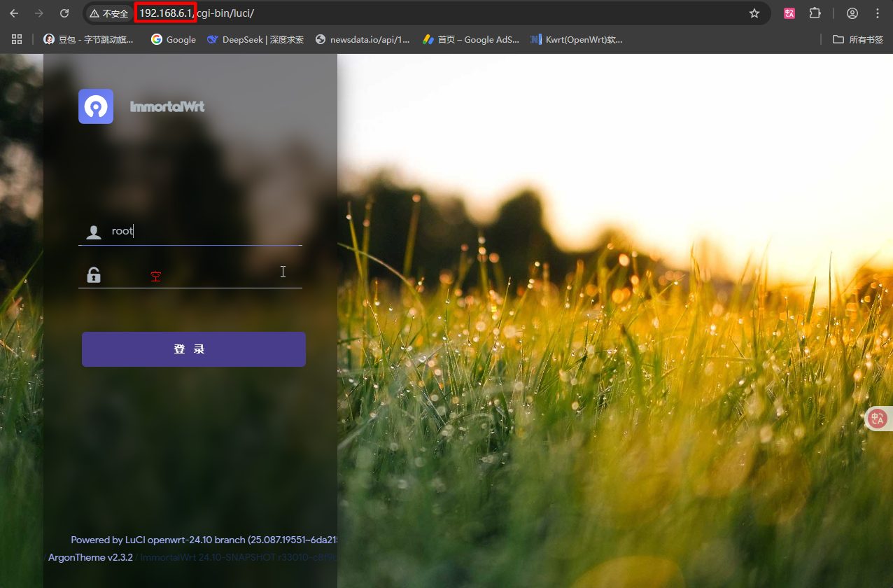 输入192.168.6.1,这个地址进入openwrt。(不要一直在192.168.1.1这里琢磨了,1.1这个界面会一直转,不用管)