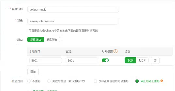docker安装没有什么特别的,拉取镜像solara-music,然后设置本地等地端口就可以了。