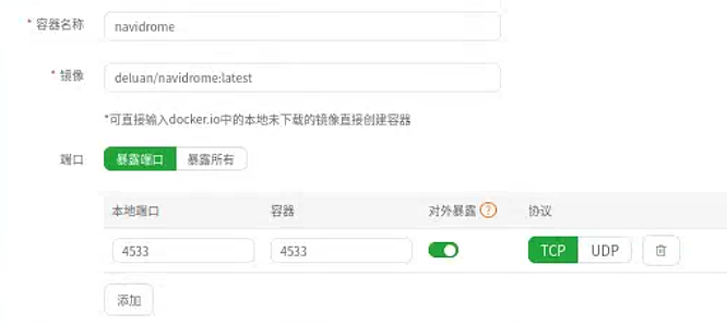 安装也很简单,拉取镜像 Navidrome,设置端口4533,然后有一点注意,音乐和数据目录建议自定义到你熟悉的路径,因为要上传音乐文件,建议改个好找的路径。
