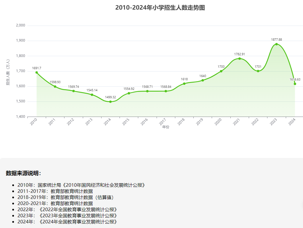 中国人口各阶段入学走势图,快达峰了
