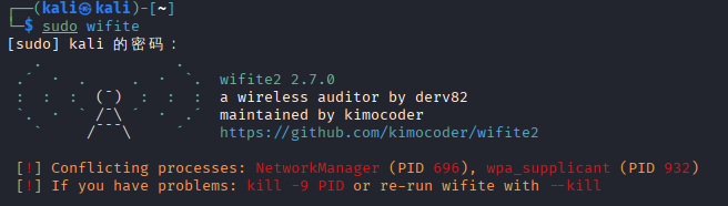 好,简单给大家演示一下kali系统利用wifite命令破解WiFi密码的过程。(自己的WiFi路由器)