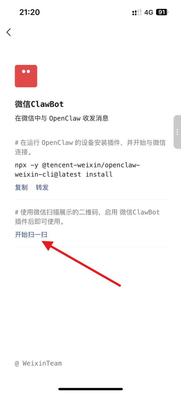 npx -y @tencent-weixin/openclaw-weixin-cli@latest install