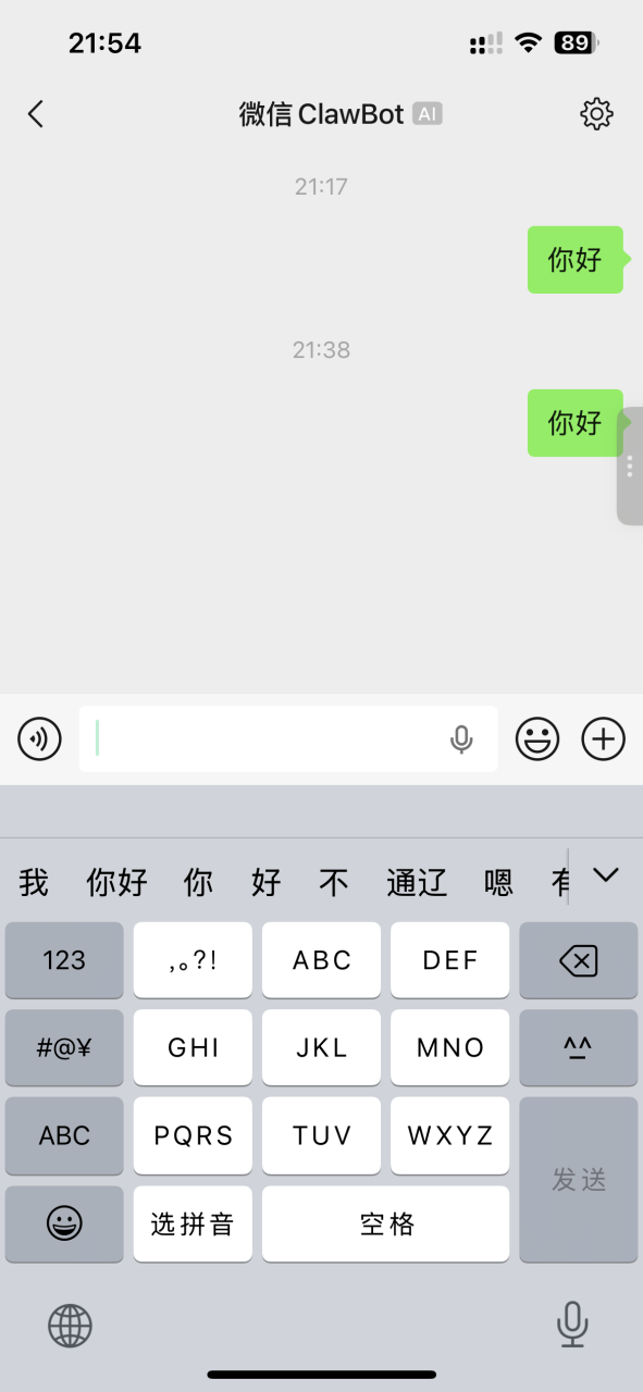 然后你的微信就会进入“微信Clawdbot”的对话界面。