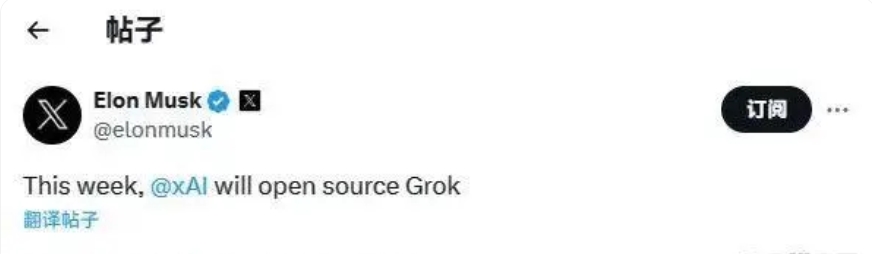 当前文章标题:xAI即将发布开源大模型Grok,马斯克要干翻OPenAI