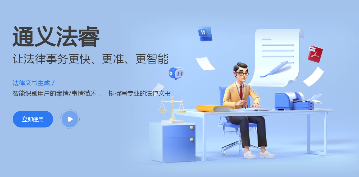 通义法睿,法律相关的工作辅助。比如简单的法律咨询,案情的分析,法律文书的撰写,类似案件的推送参考等等。