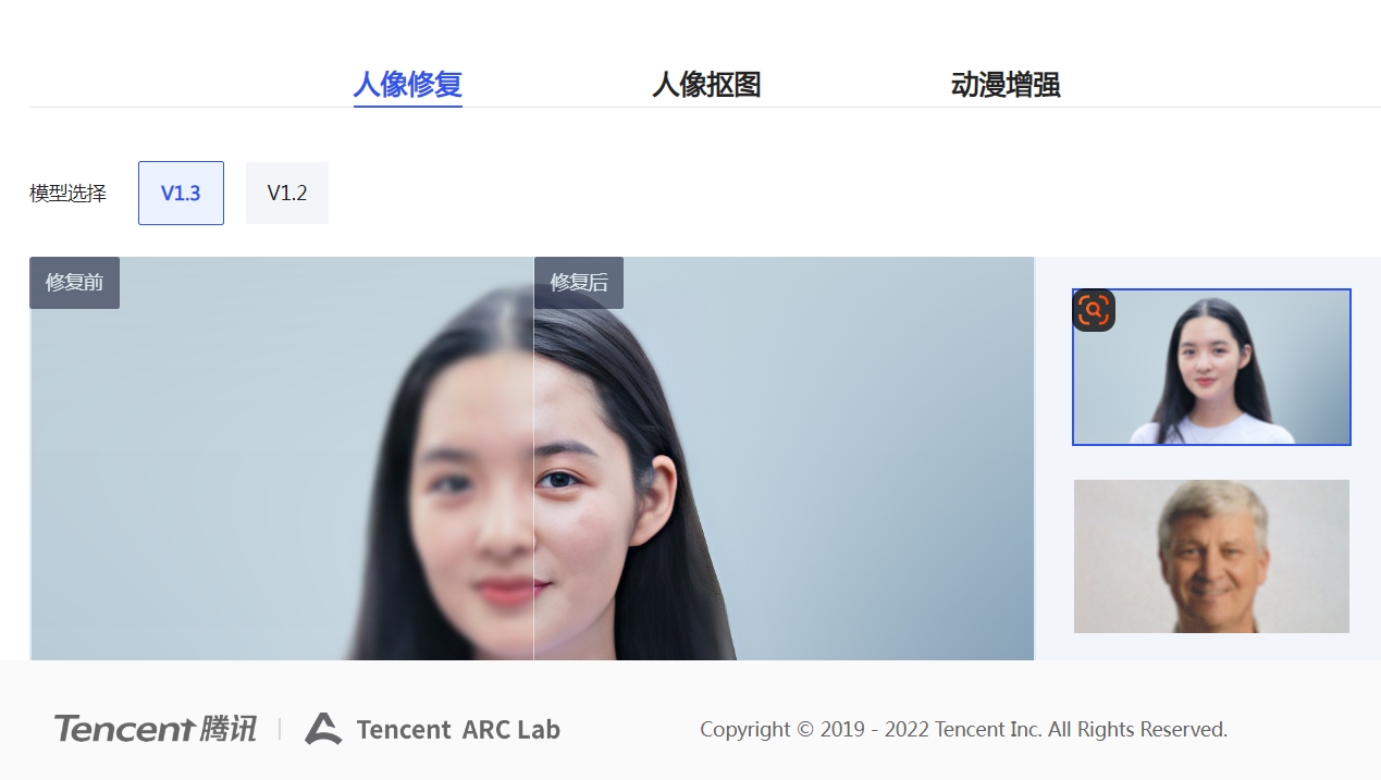 https://arc.tencent.com/zh/ai-demos/faceRestoration