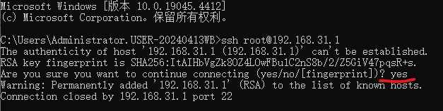 出现这个问题,输入yes,就行了。然后再来一遍ssh root@192.168.31.1