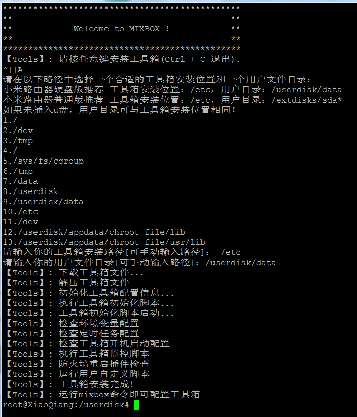 进入后开始安装mixbox工具箱,命令如下